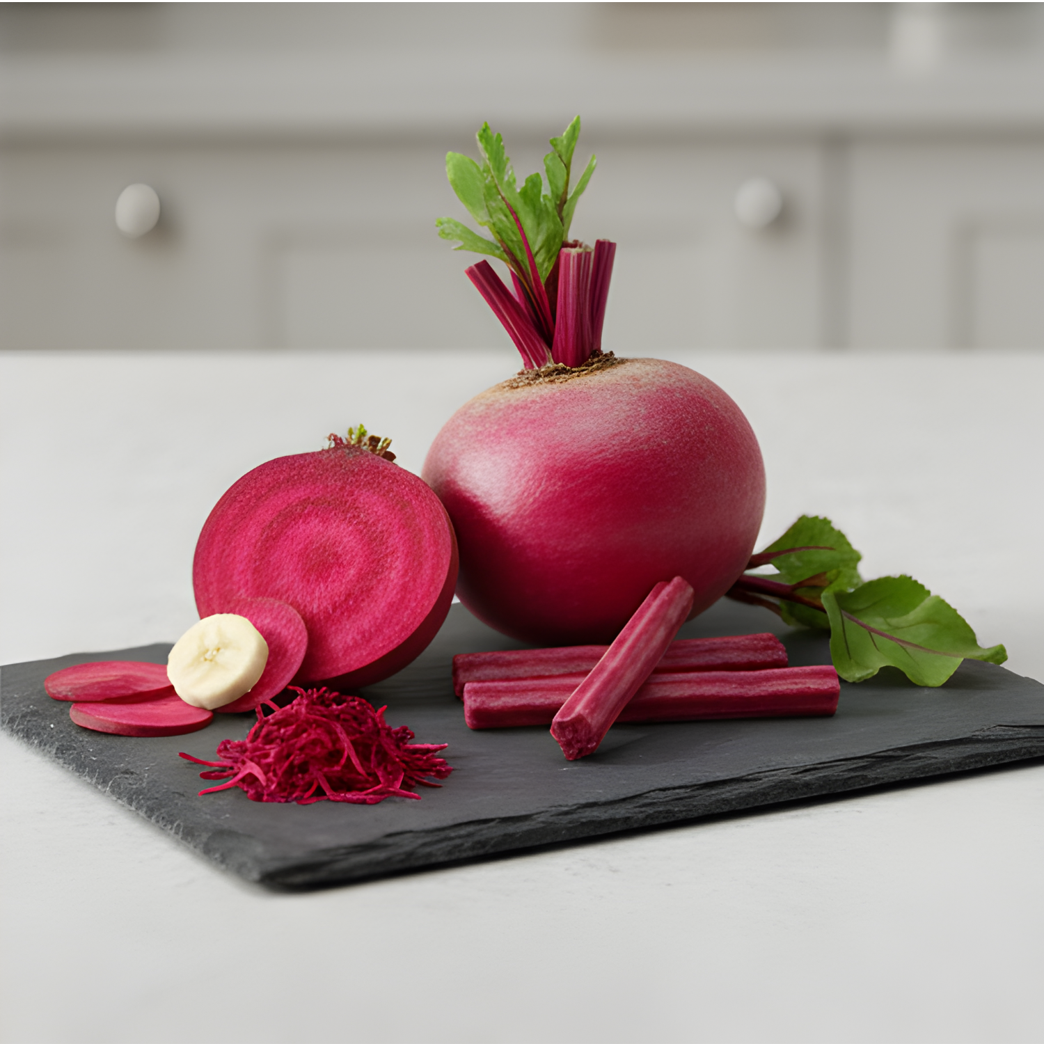 Infuse your dog's diet with the natural goodness of vibrant beetroot. This powerhouse root vegetable is not just a delightful pop of color; it's a rich source of essential antioxidants, fiber, and vital nutrients known to support healthy digestion, boost immunity, and promote a shiny coat.